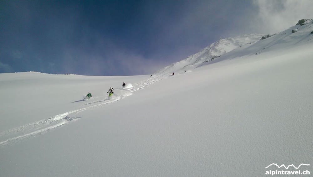 Wir versuchen stets, die Gruppen so zu bilden, dass jedermann skifahrerisch auf seine Rechnung kommt. So die Skifahrer und Snowboarder, die in anspruchsvollem Gelände mit vollem Einsatz fahren wollen, und auch diejenigen, die es etwas gemütlicher nehmen und mehr Zeit haben möchten, um die schöne Landschaft zu geniessen und zu fotografieren.